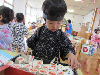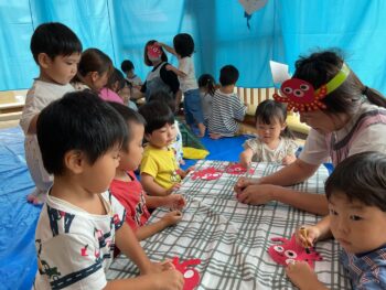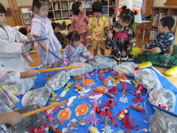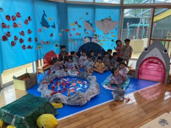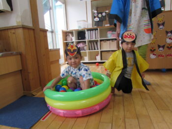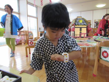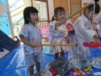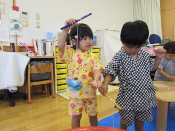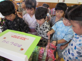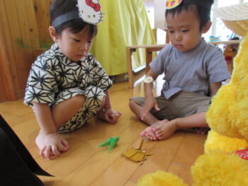 甚平、浴衣を持っている子は、お家から着てきてからの登園で、いつもとは違う