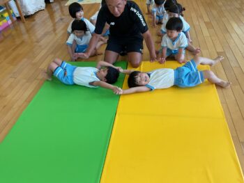 友達と一緒に転がる時には、笑いが止まらない様子の子どもたちでした