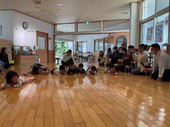 運動遊びでは、「うごいてタッチ」「だるまさんオニ」「タマゴでゴロン」などをして遊びました![]()