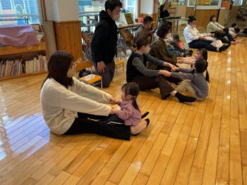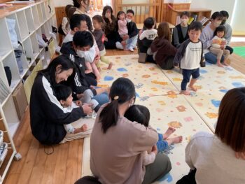 「さくらさくらんぼ遊び」をお父さんやお母さんと一緒に音楽に合わせて楽しみました![]()