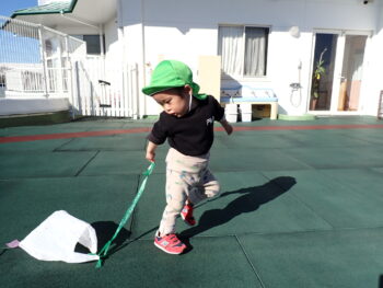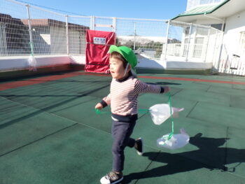凧あげでは2階のテラスに行き、広々とした場所で思い切り走っていた子ども達![]()