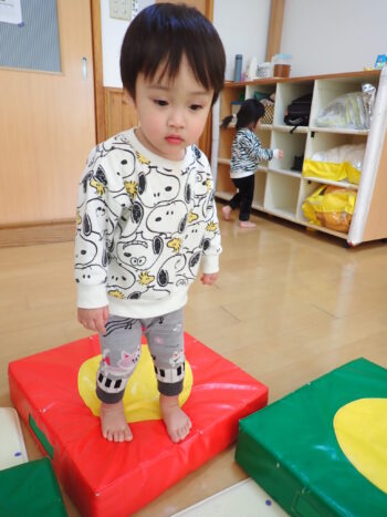 少し不安定な場所を歩いたりと、運動遊びを楽しんでいます![]()