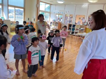 来ないように追い払ってもらい、無事に豆まきごっこが終了しました![]()